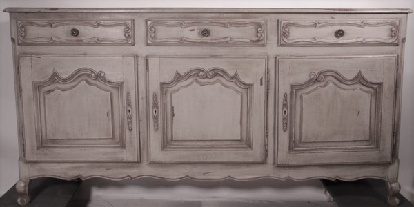 MEUBLE Dressoir en chêne polychromé avec 3 tiroirs et 3 portes. Style Louis XV 19ièm. Origine France. H: 93 cm L: 185 cm P: 49 cm